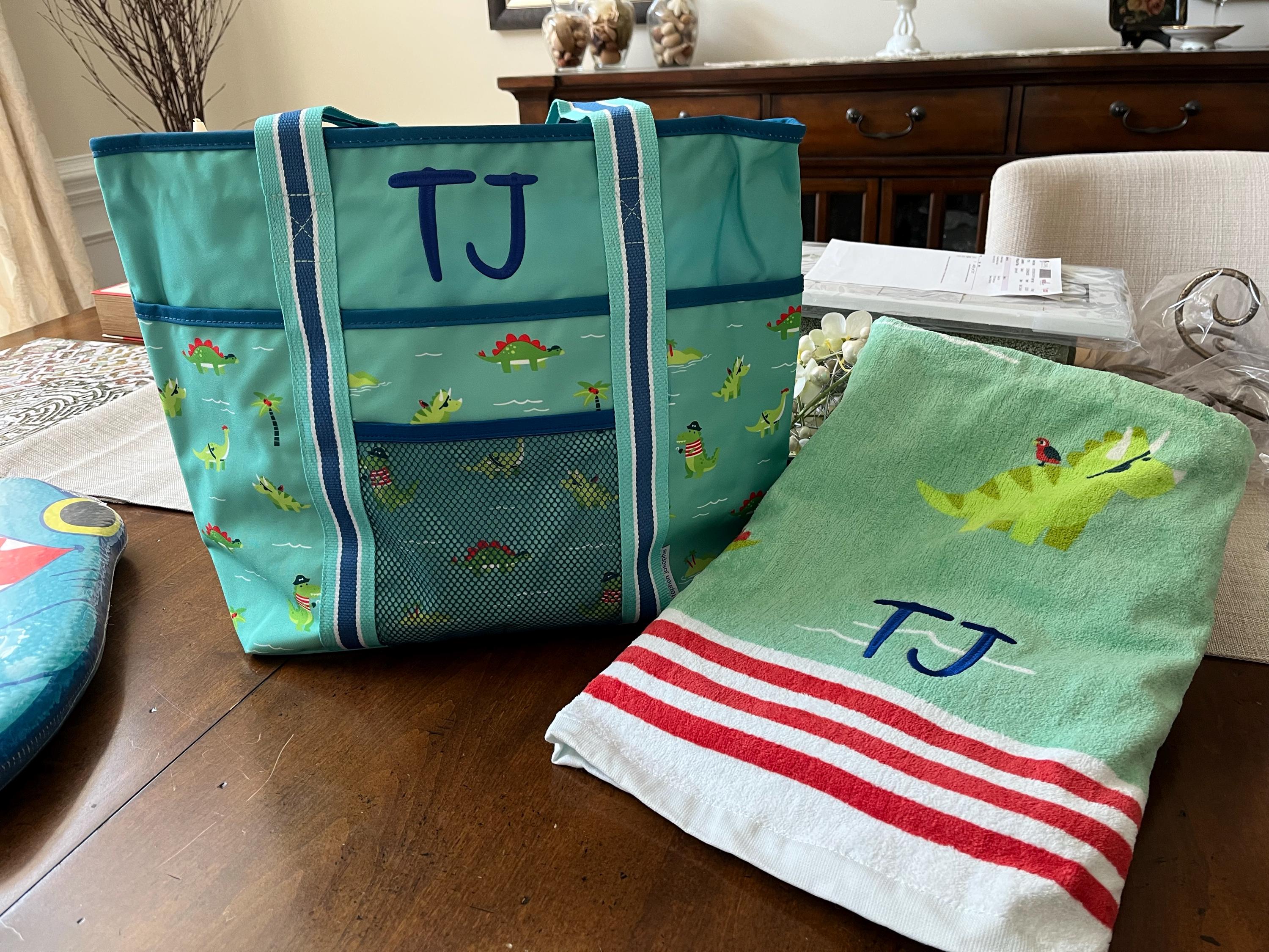Just received bag and towel and I couldn’t be happier with my purchase! Both items are high quality, adorably stitched and received promptly - can’t wait to gift it to my grandson stuffed with pool toys.